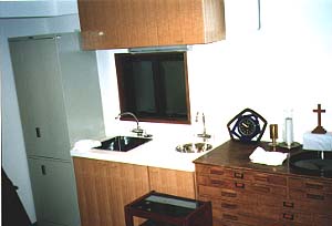 ベストリー内部。 聖器専用の流し台(右側)は そのまま地中に流れ込みます。 |
