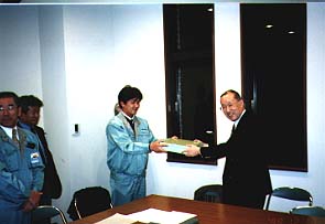 12月17日の引き渡し式。 現場監督の山本さんより 谷実行委員長に 鍵を渡されました。 |