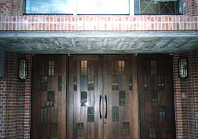 聖卓はヴォーリズ 設計により マーレー司祭の 製作。 なんと450もの パーツが 使用されています。 |