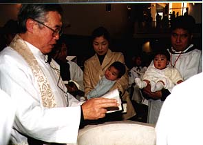 12月19日(日)、新しい礼拝堂で、二人の幼子が洗礼を受けられました。おめでとうございます。