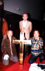 辻淳一さん(中央)と 富木章さん(左) 富木さんは奇しくも マリア幼稚園の卒園生で クリスマスページェントにも 出た記憶があるとか.. |