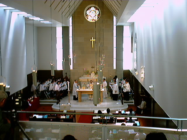 今年はまた、昨年3月まで司牧しておられた浦地洪一司祭(現平安女学院中学高等学校校長)が共同司式をしてくださいました。入院中のところ、医師の外出許可を得てのご奉仕でした。新聖堂建築のために五年間浦地司祭と労苦を共にしてきた教会員一同は、約一年ぶりに同司祭から陪餐し、感慨に浸りました。浦地司祭が転勤の際に献げられた復活のろーそくも、ひときわ光り輝いて御復活の喜びを告げていました。