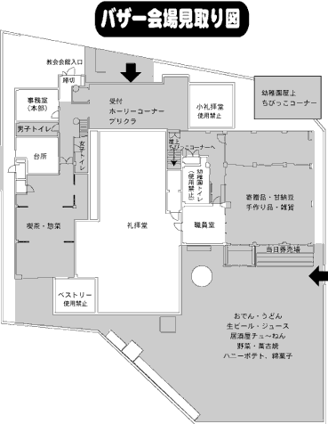 今年のバザーは、昨年の成果と反省を踏まえて、過度な負担にならず楽しいバザーを目指して企画しました。バザーの目的は礼拝堂建築献金(忘れていませんかまだ1000万円借入金あり)ですが、日曜学校から婦人会までの教会内各部門と、幼稚園、ボーイスカウトが共通の目標のために共に働き、交流を深める数少ない機会でもあります。ご近所の皆さん、お友達にも声をかけていただき、一人でも多くの方に教会や幼稚園、ボーイスカウトを知ってもらいいたと思っています。ご協力を!