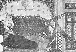 (図は右側の天使ガブリエルから神の啓示を受けるムハンマド)
