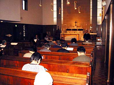 2002年度の教会の目標は、「ハレルヤ、心を尽くして主に感謝しよう。神をたたえる人の集いの中で。(詩編111・1)」。「神をたたえる人の集い」として主日礼拝出席常時百名超、現在受聖餐者三百名という具体的な数値目標も示されました。厳しい財政状況の中でも次世代への宣教に関する予算は増額されています。また、牧師給与のあり方についても予算案の中で示され、幼稚園と教会との関係を信徒全員で考える年にふさわしい総会となりました。