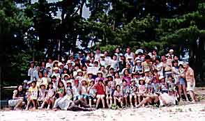 毎週日曜日、朝9時30分に子ども達が礼拝堂に集まります。10名の教師が菅原さと子校長先生を中心に、毎月一回教師会を開き、いかに子供たちを喜ばせられるかを話し合っています。礼拝の司式、奏楽、お話しを教師輪番で担当し、また、子供たちにも順番に司式や奉献の礼拝当番をしてもらうことにより、礼拝を守るという意義を体験してもらっています。礼拝の後は会館集会室で製作をしたり、お話しや紙芝居をしたりと聖餐式の始まる10時45分まで、楽しく過ごします。また、二ヶ月に一度お誕生会も催します。年間の行事は100名以上が参加する夏の北小松キャンプを中心に、遠足・ハイキングやお散歩、社会見学等様々な企画をしています。