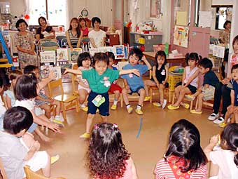 4月9日から2002年度が始まり、新たな「聖マリア幼稚園」の看板や羊もお目見えしました。7月19日をもって一学期を終了します。過去最低数の26名でスタートした昨年度より増え、40名のスタートでした。そして、一学期終了時には43名になり、9月の二学期には更に5名増えて48名になる予定です。いずれも花組での増員で、定員数25名(うち、満3歳児入園の小花が7名です)きっちりになります。pre-preからの途中入園を含め、賑やかになるのでとても嬉しく思っています。教会の方々には、(特に昨年度は)物心両面での支えを頂き本当に感謝しております。この園児数の推移をコイノニアを通して是非ともお知らせしなくてはと考えました。また、この人数は先生ひとりひとりの頑張りでもあります。そして、特に三歳児のクラスでは、従来の副担任の体制がとれないものかとハローワークを通したところ、四年間の幼稚園教諭経験のある先生と出会えました。様々な事情を考えあわせてアルバイトとして来て頂きます。9月から来年3月の卒園式まで、また子供達の降園後30分までという仕事になりますが、アルバイトとは言え、幼稚園の仕事を経験し、責任ある仕事である事は重々承知の上なので、麻衣先生の助け手として子供達のお世話をして頂けるのではないかと思っています。また、機会があればみなさまにご紹介したいと思います。pre-preも九月から新たなメンバーを迎える事になっています。