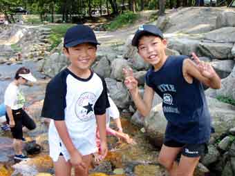 今年のカブ隊のキャンプは、滋賀県のマキノスキー場で行いました。テーマは「ライオンキング」。冬はスキーヤーが埋め尽くすこのゲレンデをポイントラリーで駆け回りました。また、川では魚つかみ、沢登りと、元気一杯プログラムを楽しみ、参加者のスカウトリーダー55名とも、非常に満足できたキャンプでした。
