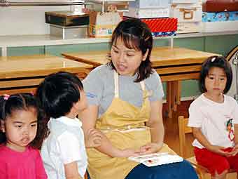他園で四年間この職に就き、?年間のブランクを経て昨年九月より聖マリア幼稚園のお手伝い先生として返り咲いています。