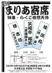 一方、10月19日(日)午後3時半は第3回「まりあ寄席」。出演は笑福亭福笑、桂出丸、桂吉坊。