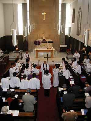 @24日深夜の聖餐式は降誕日第一聖餐式で、聖歌集第五部の聖餐式U(プレイン・ソング)のB、いわゆる「マリア・ミサ曲」による歌ミサです。約40名の出席で盛況でした。教会員だけでなく、一般の方も大勢お見えになりました。マリアミサ曲には聖公会の他の教会の方々も大いに関心を持っておられます。