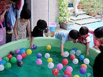 さて、蝉の鳴き声も耳に届くようになった、7月16日。一学期最後の締めくくりの行事「夏のお楽しみ会」がありました。第一部はお礼拝。聖歌やチャプレン先生のお祈り、お話と、心静かに今日ここに集えた事を感謝しました。そして第二部は歌とリズムバンド(楽器演奏)の発表。子ども達は神様からいただいた上等な力を使って、花組はなんともかわいらしく、赤組は笑顔一杯で、緑組はさすが年長!と思わせる緊張しつつも良い顔で、練習の成果を存分に発揮し、素敵な音楽を奏でてくれました。第三部はゲーム大会。幼稚園の園庭やホール、中屋上やお部屋がゲームコーナーに変身。ヨーヨーつりや魚釣り、的あてにサッカーゲーム、輪投げをご家族の皆さんと一緒に楽しみました。どの顔も笑顔がはじけて「お楽しみ会」という名前のとおり、楽しい会となりました。そして、20日は終業式、幼稚園は長い夏休みに突入しました。一学期間、無事に過ごせた事を感謝し、この夏休みが怪我や事故なく、実りある休みとなりますように。感謝。