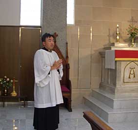 京都聖マリア教会に実習となり二ヵ月余り。主日の午前中に礼拝が五回(時に六回)、聖書研究も毎週あって、気が付けば一日中教会にいるといった状況で、振り返ると指導司祭の藤原先生の勢いに何とかついていってるという感じがします。