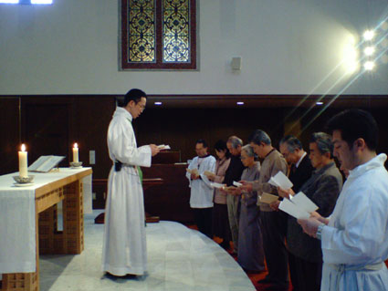 一月一四日(日)聖餐式中に教会委員任命式が行われ、新教会委員一二名が藤原司祭から任命書を受け取りました。