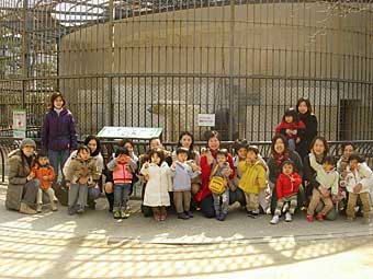 親子で色々な活動を経験してきましたが、2月より、4月に入園する3歳の子供達を対象に、週一回ですが一人登園を実施しております。2月15日には7名の子供達がお母さんと離れて一時間半を過ごしましたが、どの子も、お母さんを思い出して寂しくなったり、泣き出す事もなく、子供達同士で仲良く楽しく過ごす事ができました。子供達は一人で過ごせた事が自信に繋がりました。そして入園に向けての子供達の心の準備のお手伝いが出来たと感じました。27日には花組さんと一緒に過ごして交流を深める予定です。また、お散歩は気候の良い春や秋に出かける事が多いのですが、今年度は暖冬という事もあって思いきって2月に動物園に出かけました。四月の様な暖かさで最高のお散歩日和!しかも人が少なく、ゆっくりと動物達と触れ合う事が出来ました。冬に外に出かけるのも新しい活動経験になりとても楽しかったようです。プレプレの活動の中で、欠く事が出来ないのは、お手伝い頂いている幼稚園の在園児のお母さん方のお力です。自分のお子さんとたった一歳しか違わない花組のお母さん方から緑組のお母さん方まで、ついこの間まで、我が子の2歳児時代を思い出し、幼い子供達の様子に目を細めながらお手伝いして下さっています。さすが子育て真っ最中!その日の活動の準備だけではなく、まだ言葉も充分話せないプレプレの子供達の気持ちを汲んで、子供達の目線になって、言葉がけや対応をして下さるのは、子育ての経験をお持ちだからこそです。又、核家族化で、抱えた不安にも気軽にアドバイスをして下さる事で、みんな同じ悩みを抱えていた事や悩まなくてもよい事に気がついたりと、プレプレのお母さん達にとって、子育て支援の場となり、安心し、参加して頂ける一つの要因だと思っています。お忙しい中、ご協力下さっているボランティアのお母様方に支えられて、この教室が在ります事に大変感謝いたしております。今年度も約半数がプレプレを巣立っていきます。最終日まで残り少ない活動回数となりました。巣立っていく子供達は入園に向けて、また2歳児のお友達は来年度のプレプレのお兄さんお姉さんとしての自覚が持てるように、最後まで精一杯子供達をバックアップして行きたいと思っています。主に感謝