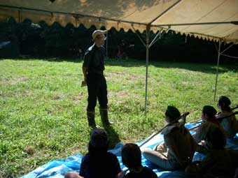 例年このキャンプでは必ず『雨』に見舞われますが、今年は期間中晴天続きの恵まれたキャンプとなりました。 スカウトたちは、ナイフやサバイバルキット・ペットボトル浄水器の制作を行い、竹でのパン/アルミ缶でのご飯料理にチャレンジしました。(副長 荒木一登)