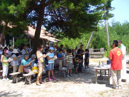 その後は緑陰での昼食、そして藤原司祭がご準備下さった竹を使った「マイ箸(はし)」作り…短い時間ではありましたが、とても充実したひとときで、琵琶湖で泳ぐ子どもたちの歓声を聞きながら、帰路につきました。