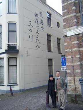シーボルト通りの シーボルト記念館では隣家の壁に 芭蕉の句が落書きのように 書いてありました。 |