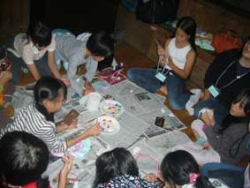 日本聖公会京都教区主催の小学生キャンプには当教会から吉川愛永(小6)、松本優平、山口順帆、吉村真綾(小4)の4名が参加しました。製作ではランプシェード作り。また一メートル八〇センチもある韓国のり巻きを作ってみんなで食べました。年に一度しか顔を合わすことのない仲間ですが、来年の再会を誓い合いました。