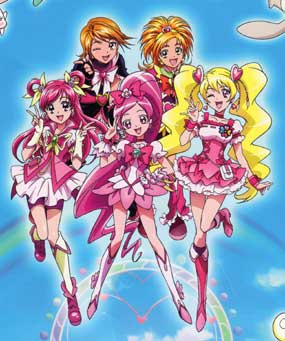 まず、登場人物たちが、「スッゴク」可愛いのです。主人公たちの変身した姿は、大きなリボンにひらひらのレース、ピンクを中心にキラキラ輝く色遣い、それにハイヒールです。髪の毛までも、変身と共にさらりと長く伸び、ふわりとボリュームが増え、ピンクやブルーなど、あざやかな色に変わります。これは今の女の子たちの憧れの姿なのでしょう。こんな姿に変身したいと、誰もが思うことでしょう。画面の中では、主人公たちが実に楽しそうに変身しています。これから悪者たちと闘う筈なのですが、彼女たちはおしゃれを楽しむように、笑いながら、軽やかに変身しています。