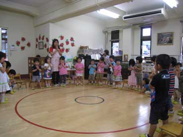 入園式から二ヵ月が経ちました。大好きなお母さんやお父さんとお分かれするのが悲しくて、朝から一杯泣いていた花組さんも、今では「おはようございます!」と、元気にご挨拶をして、ニコニコ笑顔で幼稚園に来てくれるようになりました。随分幼稚園の生活に慣れてきたようです。聖マリア幼稚園の生活の中で、毎日変わらず、必ずしている事・・・それは、お祈りです。お祈りに始まり、お祈りに終わる幼稚園での一日。子ども達にとっては、初めて耳にするお祈りです。最初は何を言っているのか解らず、ただただ聞いていた「主の祈り」も、今ではお言葉も覚えて一生懸命に唱えています。少々張り切りすぎて大きな大きな怒鳴り声に声になってしまう事もありますが、子ども達は「主の祈り」が言えるようになった事が嬉しくて、一生懸命なのでしょう。他にも食事の前のお祈りや、お誕生日のお友達や家族の人達のお祈り、感謝のお祈り、お休みのお友達のお祈り、一日の中の色々な場面でお祈りをします。以前、保護者の方が、お帰りの時にする、「お休みしているお友達もお守り下さい。」というお祈りがマリアらしくていい、と言って下さったことがあります。私もこのお祈りはとても好きです。子ども達は、お休みのお友達がいると、「明日は来はるかなぁ?」次の日は「今日○○ちゃん来たはる??」と、お休みのお友達を想い、心配する気持ちも芽生えてきました。殆どの子ども達が、聖マリア幼稚園に来て初めてキリスト教・お祈りと出会いました。しかし、毎日の繰り返しの中で、子ども達にとって、だんだんとお祈りが自然なものになってきています。お家でも、「主の祈り」を唱え、聖歌や食事の前の歌やお祈りをしているというお話もよく耳にします。また、毎週お礼拝堂で聴く園長先生やチャプレン先生の聖書のお話を通して、神様が創られた素晴らしい世界を知りました。お友達の事、家族の事、世界中の人達の事、虫や花等の生き物の事・・等々、身近な事もそうでない事も、色々な事をお祈りする(姿の見えない神様とお話する)中で、いつも神様に守られている事を知り、感謝する事や人を思いやる心を養って欲しいと思います。神様や周りの人々に守られながら、子ども達が感性豊かに、大きく逞しく成長してほしいと願っています。