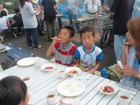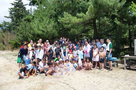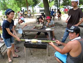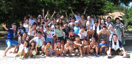今年は小学校が夏休みに入る前のキャンプにもかかわらず35名(幼稚園児含む)の子どもが参加。大人も部分参加を含め40名、総勢75名でキャンプをする事が出来ました。それも前日までの雨が嘘のように見事な快晴の中(非っ常〜に暑かったですけど。)でのキャンプ。全体的に時間は押し気味でしたが、用意したプログラムが全て出来た事、本当に感謝です。