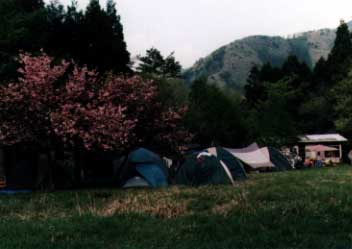 京都聖マリア教会は、京都府北桑田郡美山町芦生(あしう)に3000坪の広さのキャンプ場を持っています。京都市内と日本海のちょうど中間にあたる芦生は、たくさんの自然に囲まれたすばらしい土地です。夏は鮎の名勝・由良川で水泳。川幅は10メートル位ですが、水深は2メートル以上の部分もあり、かなりの高さから飛び込んでも大丈夫です。一般の方は入ってこれないので、まるでプライベートビーチ気分です。また水の透明度は最高で、水中メガネをして潜ると目の前にいっぱいの魚が見え、アマゴやイワナなども捕れます。春・秋は付近の山々の散策。特に山菜やキノコの種類は豊富で、キャンプの食卓にたびたび登場します。冬はさすがに雪深い京都北部。滑り止めがないと行けませんが、背丈以上の雪の中、雪中キャンプ等も可能です。