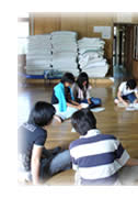 2005年7月25日(月)〜28日(木)まで、北小松研修所にて中学生キャンプが行われました。敗戦後60年を迎え、テーマを「シャローム(主の平和)」とし、「その家に入ったら、『平和があるように』と挨拶しなさい(マタイ10:12)」を主題聖句としました。中学生6名、スタッフ4名とこじんまりしたキャンプでしたが、ゆったりとした時間の流れの中で一人一人としっかり向き合えたと思います。