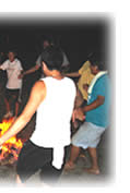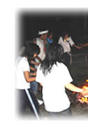 午後の水泳の後は『みんなで作る夕の礼拝』。5つのグループでそれぞれ聖歌を担当し、自分の選んだ楽器で合奏しました。それを伴奏にしてみんなで聖歌を歌いました。また、お昼のピザの材料を使ってパンを焼き、それとブドウジュースとで「愛餐式」の祈りをしました。「主の平和」と言いながら、パンとブドウジュースを隣の人に食べさせてあげました。お祈りによってみんなが一つになれた時でした。夜はキャンプファイヤーで大盛り上がり!!。3日目は、振り返りと思い出作りをしました。