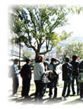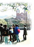 2005年3月28日(月)〜4月1日(金)、4泊5日で京都教区の中高生15名、スタッフ7名で長崎を訪れた。昨年春の沖縄訪問から始まった「J'sキャンプ」であるが、そのつながりの中から今年は沖縄教区の中高生が合流する運びとなった。そして、せっかく九州に来るのだからと、九州教区の中高生も一緒にということで、総勢64名という大所帯のキャンプとなった。 28日の夕方教区センターに集まり夕食を食べて出発。ほぼ貸し切り状態のバス内は賑やかだった。 29日朝7時半、寝ぼけ眼で長崎聖三一教会に到着すると、前日から来ている九州と沖縄のメンバーが出迎えてくれた。60名が揃ったところで朝食を頂き、開会礼拝とオリエンテーション。全員の自己紹介ゲームと人間知恵の輪で緊張をほぐし、長崎市内へ繰り出した。