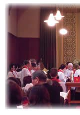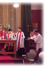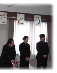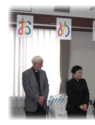 礼拝後は教区センターへ移動して祝会をし、たくさんの食事を囲んで、参列者皆で祝福しました。出口新執事、パイ新執事、三木新司祭、加納新司祭、三浦新司祭それぞれのご挨拶では、感謝の言葉と今後の働きについて熱い思いを語られました。