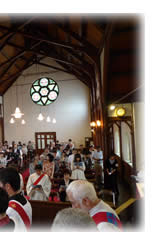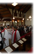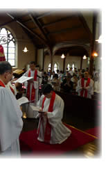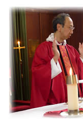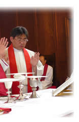 7月10日(土)午前10時30分より京都教区主教座聖堂(聖アグネス教会)にて、サムエル奥晋一郎執事の司祭按手式が行われました。当日は約190名の出席者で、日本福音ルーテル教会からご来賓の方と、奥司祭の出身である大阪教区からも聖職とたくさんの信徒の方々が来られました。 礼拝後は教区センターへ移動して祝会をし、参列者皆で奥新司祭の誕生をお祝いしました。奥司祭のご家族・ご親戚の方々の紹介、ご来賓の方のスピーチや様々なエピソードが紹介され、喜びにあふれた楽しい祝会となりました。
