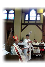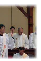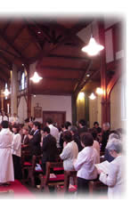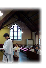 6月16日(土)京都教区主教座聖堂(聖アグネス教会)にて、ヤコブ岩田光正聖職候補生の執事按手式が行われました。当日は約120名の出席者で、教区内外から聖職と信徒の方々が来られました。 礼拝後は教区センターへ移動して祝会をし、参列者皆で岩田新執事の誕生をお祝いしました。岩田執事のご家族の紹介、ご来賓の方のスピーチや様々なエピソードの紹介などがありました。終始緊張ぎみの新執事でしたが、喜びにあふれた楽しいお祝いの会となりました。