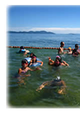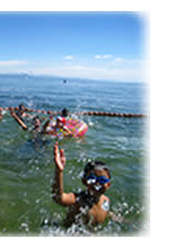 手形名札をつくり、琵琶湖で思う存分水泳をした後、オリジナルの手ぬぐいを作りました。さらしにロウで名前を書き、輪ゴムを使って絞り染めをしました。翌日から自分の手ぬぐいを頭や首に巻いてゲーム大会や野外料理の焼きそばを作りました。 キャンプファイヤーや花火大会、楽しいことだらけの3日間でした。 震災によって住み慣れた土地から離れ、様々な思いを抱えながら生活している子どもたちと、京都の子どもたちがこのキャンプで出会い、笑顔に包まれた3日間を過ごすことができました。