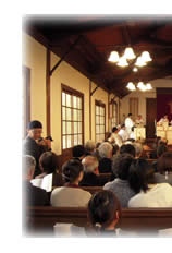 2014年3月8日(土)桃山基督教会礼拝堂にて、マタイ古本靖久聖職候補生の執事按手式が行われました。当日は約120名の聖職・信徒とともに、喜びと聖霊に満ちあふれる礼拝となり、桃山基督教会の皆さまが礼拝・祝会で心のこもった準備をしてくださいました。