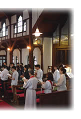 2016年6月25日(土)京都教区主教座聖堂(聖アグネス教会)にて、セシリア大岡左代子執事の司祭按手式が行われました。京都教区内外から約200名の聖職・信徒が集い、喜びと聖霊に満ちあふれる礼拝となりました。 礼拝後は教区センターへ移動して祝会をし、参列者皆で大岡新司祭の誕生をお祝いしました。この中でご家族の紹介、ご来賓の方のスピーチや様々なエピソードの紹介、歌のプレゼントなどがあり、新司祭誕生のお祝いの会となりました。