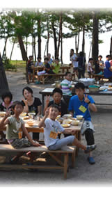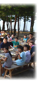 2016年度の小学生キャンプには、京都教区、大阪教区、福島から総勢48名の小学生が参加してくれました。3日とも晴天に恵まれ絶好のキャンプ日和となりました。猛暑の中、軽い熱中症にかかってしまった参加者も出ましたが、大きな怪我や病気もなく、楽しく豊かな時間を過ごすことができました。