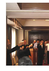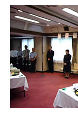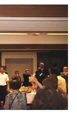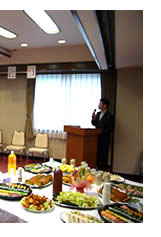 礼拝後は教区センターへ移動して祝会をし、たくさんの食事を囲んで、参列者皆で三木新執事の誕生をお祝いしました。三木執事のご家族・ご親戚の方々の紹介、ご来賓の方のスピーチ、教団の先生方からは三木執事に関する様々なエピソードが紹介され、喜びにあふれた楽しい祝会となりました。