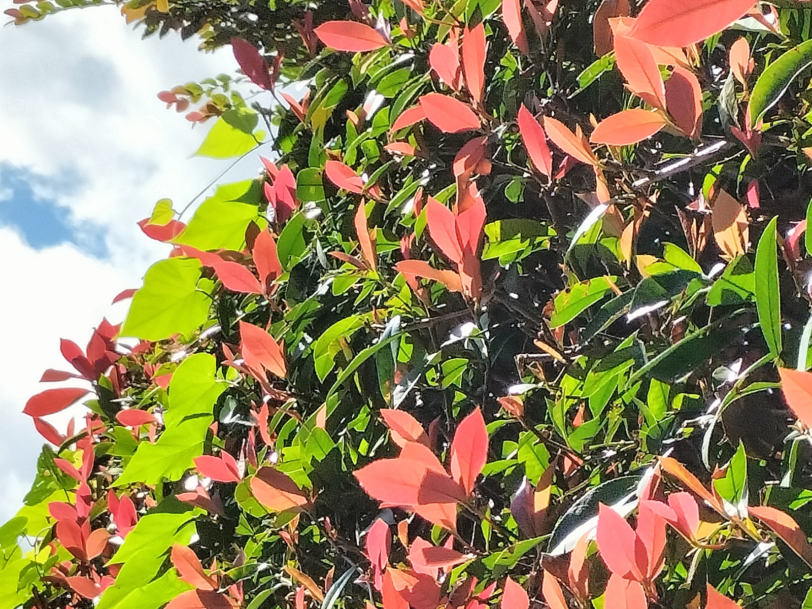 カナメモチの生垣に輝く新芽(10月27日撮影)